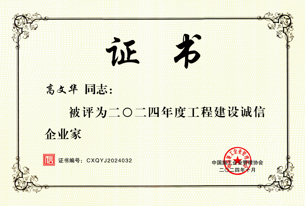 中国施工企业管理协会2024年度诚信企业家(高文华)