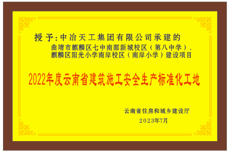 曲靖市麒麟区七中南部新城校区(第八中学)、麒麟区阳光小学南岸校区(南岸小学)建设项目获得多项奖项