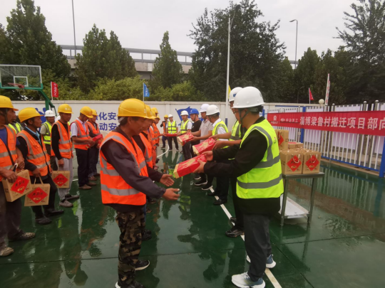 在中秋、國(guó)慶“雙節(jié)”來(lái)臨之際,中冶天工華南公司淄博經(jīng)濟(jì)開(kāi)發(fā)區(qū)梁魯村搬遷項(xiàng)目全體管理人員及建筑工人們?nèi)跃耧枬M、干勁十足地堅(jiān)守在建設(shè)工地上,為了讓這些來(lái)自他鄉(xiāng)的城市建設(shè)者們感受到節(jié)日的溫馨,9月28日,項(xiàng)目部聯(lián)合建設(shè)、監(jiān)理單位向奮戰(zhàn)在一線的工友送上慰問(wèn)。