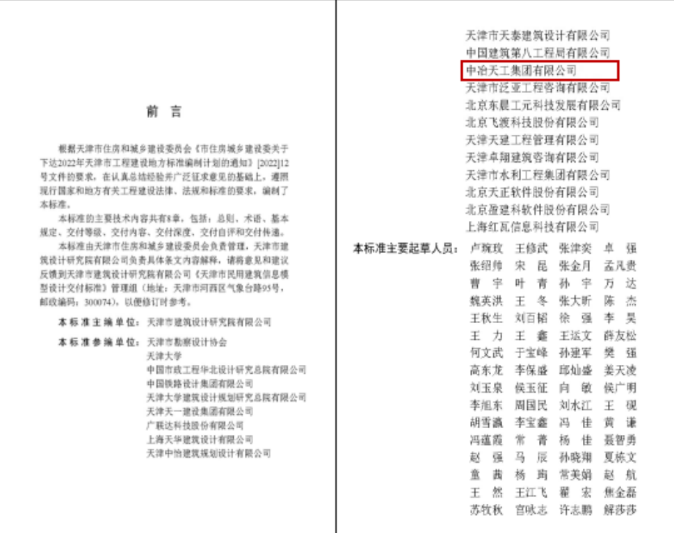 該項標準由天津市建筑設計研究院有限公司主編,參編單位包括天津市勘察設計協會、天津大學等單位,中冶天工作為參編單位之一,負責模型交付等相關內容,編制工作主要由工程技術總院BIM研究院負責完成。在標準編制期間,BIM研究院嚴格按照市住房城鄉(xiāng)建設委關于天津市工程建設地方標準編制的通知和相關要求開展工作,與主編及各參編單位及時溝通、密切配合、緊密合作。編制人員充分結合中冶天工多個BIM項目實際應用經驗,對具體技術條文進行反復討論與分析,定期參加天津市住建委組織的專題修訂會和標準評審會,對標準進行認真修改與校審,高標準完成各項編制工作。