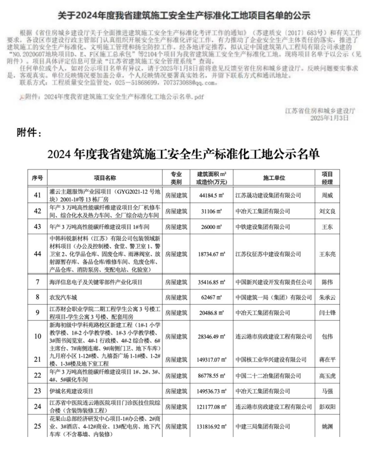 新年傳喜訊,奮楫開新局。1月3日,中原公司承建的中復(fù)神鷹年產(chǎn)3萬噸高性能碳纖維建設(shè)項目、伊城名苑項目、江蘇財會職業(yè)學(xué)院二期工程學(xué)生公寓項目同時通過江蘇省建筑施工安全生產(chǎn)標(biāo)準(zhǔn)化工地評定并公示。