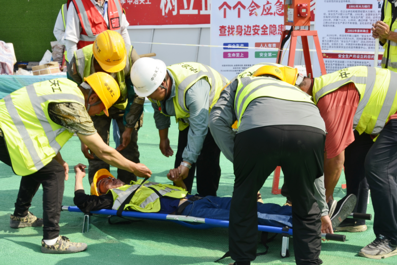 此次演練以施工現(xiàn)場觸電事故為背景,系統(tǒng)構建了從險情發(fā)生到全面處置的全流程應急響應體系。事故發(fā)生后,項目部第一時間啟動應急預案,各應急救援小組迅速集結,快速有序投入到救援工作當中,醫(yī)療救助組將觸電人員轉(zhuǎn)移至安全區(qū)域,并進行人工呼吸及人工心肺復蘇等急救救援;搶險救援組迅速切斷現(xiàn)場電源,帶領電工對現(xiàn)場進行全面排查,查看是否還有觸電危險;現(xiàn)場警戒組在事故現(xiàn)場周圍拉起警戒線,嚴防無關人員進出和拍攝,切實做好輿情控制工作;人員疏散組引導現(xiàn)場人員向應急避險處疏散,詳細清點檢查人員數(shù)量,確保不遺落任何一個人。整個演練過程組織嚴密、配合流暢,各環(huán)節(jié)銜接有序,充分展現(xiàn)了項目團隊的應急響應能力。