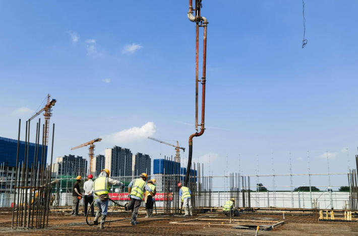 面對施工場地受限、施工工藝復(fù)雜、多專業(yè)交叉作業(yè)協(xié)調(diào)復(fù)雜等多重挑戰(zhàn),項目部始終以科學(xué)管理為基石,精心編制施工方案,科學(xué)制定施工計劃,精準(zhǔn)調(diào)度現(xiàn)場資源,全面確保工程高效協(xié)同推進。施工過程中,項目部嚴(yán)守安全紅線與質(zhì)量底線,針對鋼筋綁扎、水電預(yù)埋等關(guān)鍵環(huán)節(jié)層層把關(guān),不斷優(yōu)化平面布置與關(guān)鍵工序銜接,并通過每日“碰頭會”動態(tài)掌握進度,及時化解現(xiàn)場難題,高標(biāo)準(zhǔn)、高質(zhì)量地實現(xiàn)了“正負(fù)零”節(jié)點目標(biāo)。