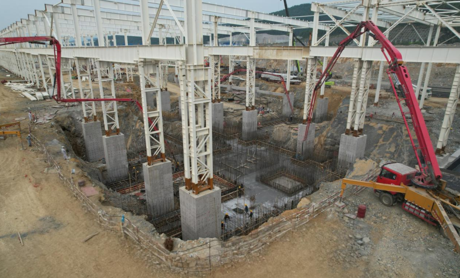 近日,工業工程公司華峰鋁業有限公司年產45萬噸新能源汽車用高端鋁板帶箔智能化建設項目迎來關鍵進展,其廠房R1粗軋機基礎底板的大體積混凝土澆筑工作圓滿完成,這一重要節點的突破,標志著項目即將進入“加速度”階段。