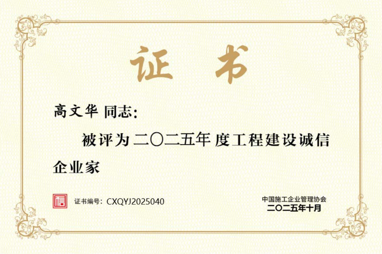 中国施工企业管理协会20242025年度全国工程建设诚信企业家(高文华)