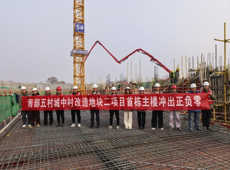 2月1日,工業工程公司濟南市口鎮街道南部五村城中村改造項目5#樓通過基礎工程驗收,歷經10小時的連續混凝土澆筑作業,成功沖出“正負零”,正式邁入主體結構施工階段。