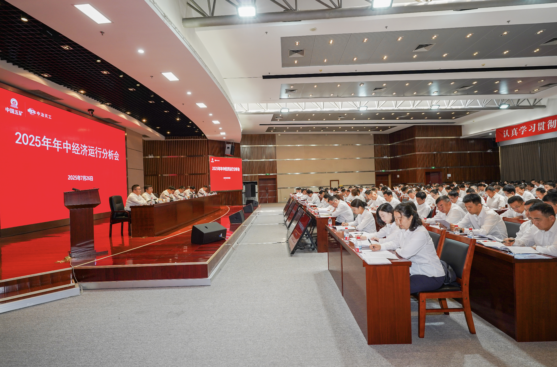 7月26日,中冶天工召開2025年年中經(jīng)濟運行分析會,總結(jié)上半年生產(chǎn)經(jīng)營情況,分析新形勢新任務,部署下半年重點工作。公司黨委書記、董事長高文華對中國五礦、中國中冶年中經(jīng)濟運行分析會精神進行解讀并作題為《錨定目標不松勁 凝心聚力打硬仗 以實干實績奮力推動高質(zhì)量發(fā)展》的講話;總經(jīng)理、黨委副書記奚會祥傳達學習中國五礦、中國中冶年中經(jīng)濟運行分析會精神;黨委副書記文科主持會議并宣讀《關于“時間過半 任務過半 確保完成上半年任務指標”勞動競賽的表彰決定》;委派總會計師阮斯蕓作上半年全面預算工作情況報告;其他領導班子成員參加會議。